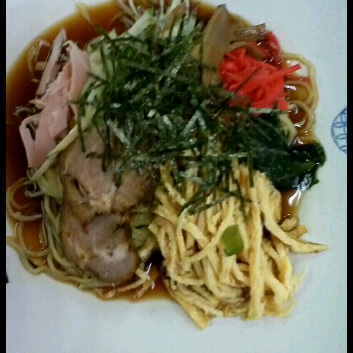 今年見つけた近所のうどん屋の「徳重屋」さんは、どんぶり物から日本そば、中華そばなどメニューも多彩ですが、只今のお気に入りは具材たっぷりの「冷やし中華♪♪」支那ちく、焼き豚、ワカメ、キュウリ、ハム、錦糸玉子などの具がところ狭しと乗っかり♪麺も通常の1.5倍!!というボリュウムも魅力!! (^^)d ここはざるそばなど、なんでも1.5倍のボリュウムで、ありがたく満足♪満足♪って感じです!!! (*´∇`*)